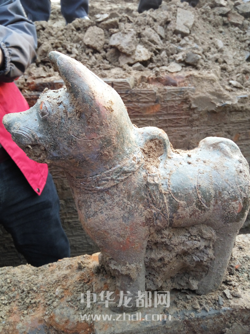 ????發掘出土的綠釉陶犬尤有趣味,犬通體施綠釉。頭部較大,身體短小,兩只耳朵彎曲向前,雙目圓睜怒視前方。犬四肢短小,矯健有力,顯示出一種自然寫實的美感。