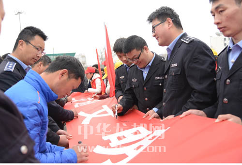 ????啟動儀式后,劉國連、王平和廣大群眾在“文明交通我承諾”主題橫幅上簽名。王平希望每一位市民以創建為己任,以簽名為約定,以實際行動來傳遞文明、踐行文明、弘揚文明,把周口鐫刻在全省文明城市的光榮冊上。????