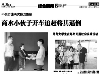 對于周口晚報的讀者朋友來說,熱心小伙陳亞輝并不算陌生——去年7月,陳亞輝曾駕駛自己的車輛逼停一位飛車搶奪項鏈的歹徒(2017年7月26日周口晚報圖文并茂報道),商水縣民政局局長朱赫受縣領導委托,到譚莊鎮慰問并看望陳亞輝,后來陳亞輝被商水縣委、縣政府評為“見義勇為道德模范”。