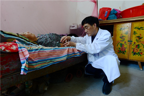 李樓鄉位張行政村72歲的貧困戶張振廷腦中風多年,在大醫院治療一個月后,留有偏癱后遺癥臥床不起;李莊行政村80歲的貧困戶李體榮也是此癥,因無錢治療,二人均回家“等死”。柴萬靈作為簽約家庭醫生,就在他們家中設立家庭病床,每周一、三、五到老張家,二、四、六到老李家,給他們采用中醫針灸、按摩,并為其煎服偏癱復原湯,兩位老人都是半年左右能拄拐下地。
