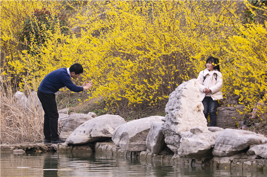 乍寒乍暖的二月天,讓迎春的花兒趕趟兒似的陸續綻開,桃紅柳綠春意濃,市民們走出家門,帶著孩子踏青賞花。文昌大道上的周口公園內垂柳綠意濃,桃花、櫻花、玉蘭花次第綻放,成為市民們春天里賞花的好去處。