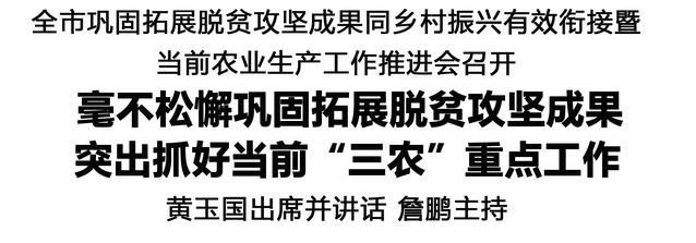 本報訊(記者 王艷) 11月10日,全市鞏固拓展脫貧攻堅成果同鄉村振興有效銜接暨當前農業生產工作推進會召開,對鞏固拓展脫貧攻堅成果、抓好當前農業生產工作進行再動員再部署。市委書記黃玉國出席并講話。市長詹鵬主持。