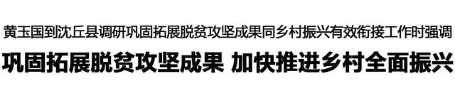 本報(bào)訊 (記者 王艷 王晨) 11月18日,市委書記黃玉國到沈丘縣調(diào)研鞏固拓展脫貧攻堅(jiān)成果同鄉(xiāng)村振興有效銜接工作,強(qiáng)調(diào)要深入學(xué)習(xí)貫徹黨的二十屆四中全會精神和習(xí)近平總書記在河南考察時(shí)重要講話精神,全面落實(shí)省委和市委部署要求,扛牢責(zé)任、真抓實(shí)干,毫不松懈鞏固拓展脫貧攻堅(jiān)成果,加快推進(jìn)鄉(xiāng)村全面振興,牢牢守住不發(fā)生規(guī)模性返貧致貧底線。