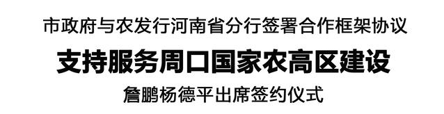 楊德平對周口市委、市政府長期以來給予農發(fā)行河南省分行的關心與支持表示感謝。他表示,農發(fā)行河南省分行將依托“糧食銀行”“農地銀行”“水利銀行”“綠色銀行”品牌優(yōu)勢,持續(xù)為周口國家農高區(qū)發(fā)展提供優(yōu)質金融服務和堅實金融支撐,共同打造政銀合作服務鄉(xiāng)村振興的“周口樣板”。①7