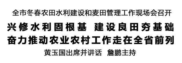 本報訊 (記者 王艷) 12月12日,全市冬春農田水利建設和麥田管理工作現場會在商水召開,深入學習貫徹習近平總書記在河南考察時重要講話精神和關于“三農”工作、治水興水的重要論述,全面落實全省冬春農田水利建設和麥田管理視頻會議部署,分析研判當前形勢,安排部署重點任務,扎實推進今冬明春農田水利建設和麥田管理等重點工作。市委書記黃玉國出席并講話。市長詹鵬主持。
