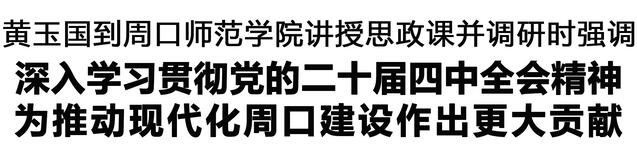 本報訊 (記者 王艷 劉昂) 12月19日,市委書記黃玉國到周口師范學院為師生代表講授思政課,宣講黨的二十屆四中全會精神,并到教學科研一線調研。