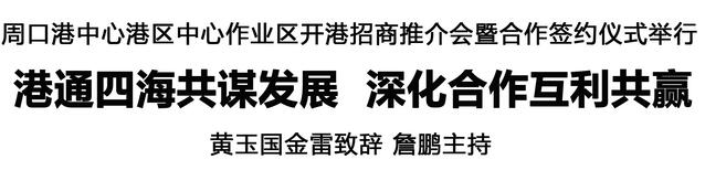 黃玉國代表市委、市政府向到會的各位領導和嘉賓表示歡迎。他指出,在省委、省政府的堅強領導下,在省交投集團等單位的全力推進下,周口港中心港區中心作業區順利開港,這是河南省內河航運“11246”工程的龍頭項目,也是我省第一個按百萬級專用集裝箱碼頭定位的高標準港口項目,必將為我省融入服務全國統一大市場建設、建設交通強省提供有力支撐。周口堅定落實省委、省政府部署要求,把臨港經濟發展作為市委“16232”總體工作思路中的“突出兩個特色”之一,強力推進項目建設,加快從“經濟通道”邁向“通道經濟”。希望大家以此次推介簽約為契機,了解周口、投資周口,扎根周口、深耕周口,在開拓物流網絡、打造產業集群、培育新興業態等方面深化合作,在互促共進、合作共贏中實現共同發展。我們將進一步優化營商環境,強化要素保障,全力推動簽約項目早日投產達效,全力支持各位企業家在周口投資興業、做大做強,共同開創互利共贏的美好未來。