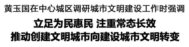 調(diào)研中,黃玉國強調(diào),從創(chuàng)建文明城市到建設城市文明,是工作理念的轉(zhuǎn)變,也是工作實踐的深化拓展。要更加注重常態(tài)長效,堅持融入日常、抓在經(jīng)常,強化機制保障,鞏固拓展文明城市創(chuàng)建成果。要更加注重精細治理,強化問題導向,下足“繡花功夫”,提升網(wǎng)格化管理服務質(zhì)效,讓群眾生活更方便、更舒心。要更加注重成風化人,大力培育和踐行社會主義核心價值觀,加強教育引導和典型選樹,堅持法治和德治相結(jié)合,弘揚崇德向善的文明風尚,不斷提升市民文明素養(yǎng),讓文明內(nèi)化于心、外化于行。要更加注重全民參與,堅持問計于民、問需于民、問效于民,搭建參與平臺,凝聚多元合力,營造共建共治共享的良好氛圍。