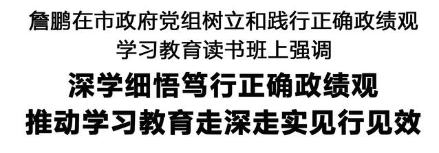本報訊(記者 李鳳霞)根據樹立和踐行正確政績觀學習教育工作安排,日前,市政府黨組采取領讀領學、集中自學和交流研討相結合的方式,舉辦樹立和踐行正確政績觀學習教育讀書班。市長、市政府黨組書記詹鵬主持并講話,強調要深刻領會習近平總書記關于樹立和踐行正確政績觀的重要論述,增強貫徹落實的政治自覺、思想自覺和行動自覺,推動學習教育走深走實、見行見效,確保“十五五”開好局、起好步。