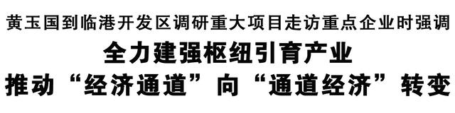 本報訊 (記者 王艷) 4月1日,市委書記黃玉國到臨港開發區調研重大項目、走訪重點企業,強調要瞄準功能定位,發揮特色優勢,在建強樞紐、引育產業上下功夫,推動“經濟通道”向“通道經濟”轉變。