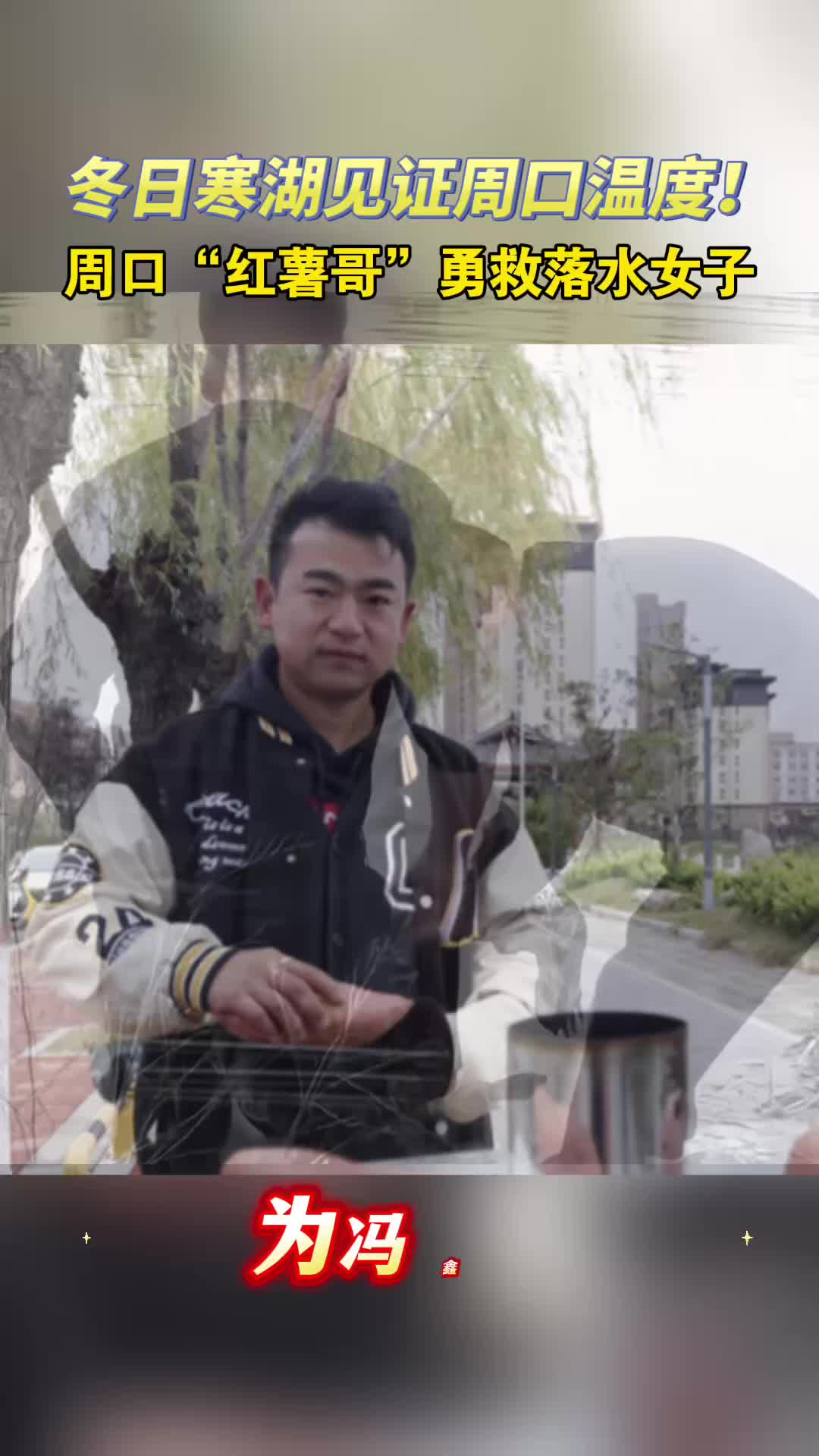 11月15日,在商水縣陽城公園賣烤紅薯的馮鑫磊突然聽到“有人掉水里了,快來救人!”的呼救聲。他循聲望去,發現幾米外的景觀湖里漂著一個人。他毫不猶豫地跳入冰冷刺骨的湖中施救。游回岸邊時他已體力不支,但救人的念頭支撐著他奮力前行。最終,他與一位趕來幫忙的黑衣大哥合力將落水女子救上了岸。?
