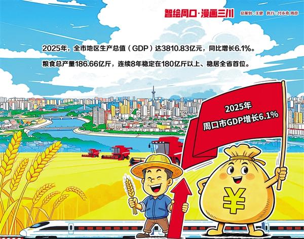 據(jù)周口市統(tǒng)計(jì)局消息,2025年全市地區(qū)生產(chǎn)總值(GDP)達(dá)3810.83億元,同比增長(zhǎng)6.1%。
