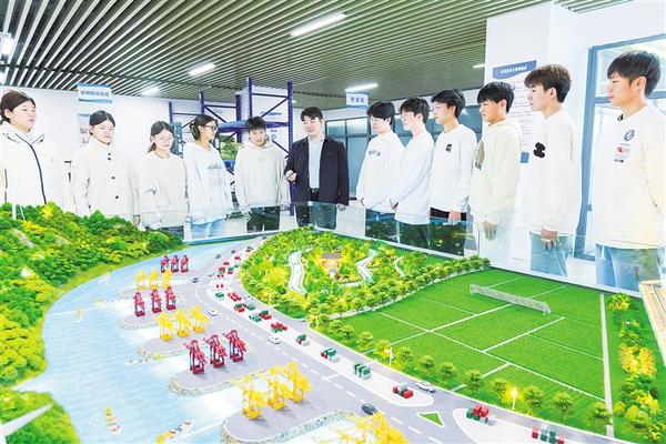師生在學校“智慧仿真實訓室”了解周口港建設。近日,周口市港航產業發展商會、周口城市職業學院戰略合作暨“AI+港航創新中心”簽約揭牌。這是我市又一家職業院校參與周口航運發展、校企深度合作的生動實踐。記者 劉華志 攝影