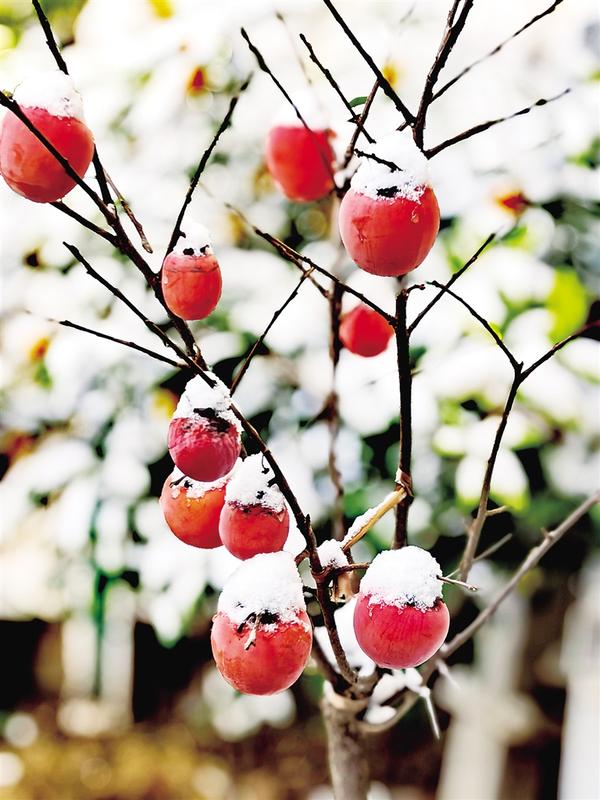 12月12日,我市迎來入冬首場降雪,為三川大地勾勒出一幅靜謐的冬日畫卷。一位市民家中的柿樹盆栽在白雪映襯下,枝頭掛滿累累果實,宛若點點紅燈籠,格外動人
