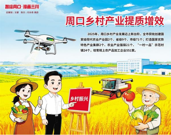 2025年,周口鄉(xiāng)村產(chǎn)業(yè)發(fā)展邁上新臺(tái)階,全市獲批創(chuàng)建國(guó)家級(jí)現(xiàn)代農(nóng)業(yè)產(chǎn)業(yè)園2個(gè)、省級(jí)9個(gè)、市級(jí)71個(gè),形成“國(guó)家級(jí)引領(lǐng)、省級(jí)支撐、市縣級(jí)補(bǔ)充”的梯次發(fā)展格局。打造國(guó)家優(yōu)勢(shì)特色產(chǎn)業(yè)集群2個(gè)、農(nóng)業(yè)產(chǎn)業(yè)強(qiáng)鎮(zhèn)21個(gè)、“一村一品”示范村鎮(zhèn)24個(gè),培育規(guī)上農(nóng)產(chǎn)品加工企業(yè)551家,形成以益海糧油、金丹乳酸、雪榮面粉為龍頭的糧食加工產(chǎn)業(yè)集群。