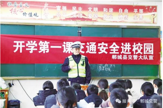 3月5日,民警為師生講解交通安全常識(shí)。當(dāng)日,鄲城縣公安局交通管理大隊(duì)宣傳小分隊(duì)走進(jìn)轄區(qū)第三實(shí)驗(yàn)小學(xué),為全校師生送上了一堂生動(dòng)有趣的交通安全“開(kāi)學(xué)第一課”,切實(shí)增強(qiáng)學(xué)生的交通安全意識(shí)和自我防護(hù)能力,為校園周邊道路交通安全筑牢防線(xiàn)。