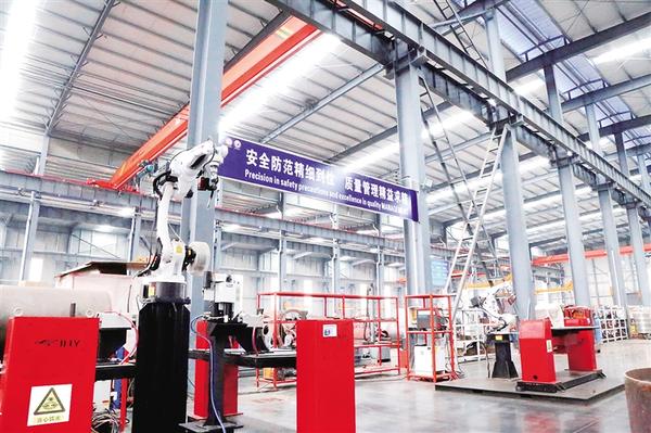 廠房門口,龍門吊下,一臺長13米、寬3米、高2.5米的智能化工業(yè)鍋爐靜靜橫置,正等待它的萬里遠航。