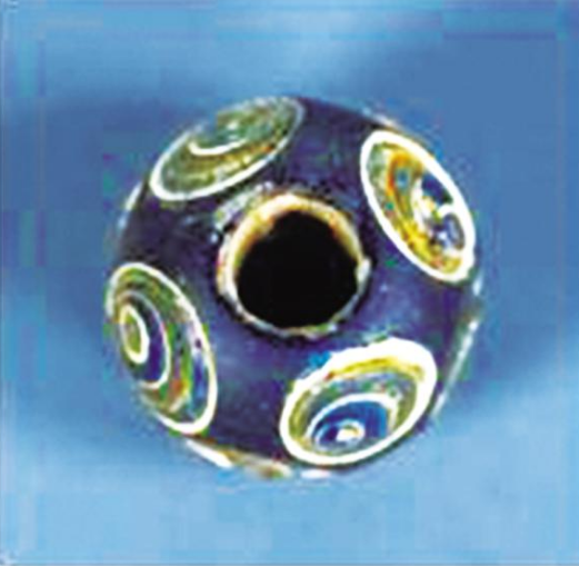 這是一枚精致的琉璃珠,靜靜躺在周口市博物館的展柜里。
